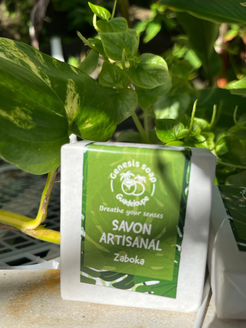 Plonge sous la douche avec le savon solide Zaboka & Manioc de Genesis Soap, un soin nettoyant authentique inspiré des richesses de la Guadeloupe.